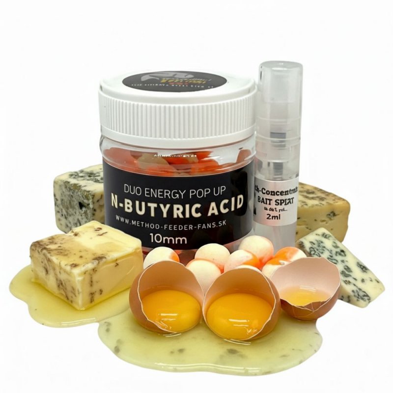 Značka Method Feeder Fans je známá svým inovativním přístupem a neustálou snahou posouvat hranice v method feeder rybolovu. Představujeme DUO ENERGY POP UP – inovativní plovoucí boilie, které je výsledkem rozsáhlého testování. Pokud hledáte nástrahu s extrémně stabilním vztlakem a dvojitou dávkou atraktivity, právě jste ji našli. DUO ENERGY POP UP je vaše nová tajná zbraň pro selektivní lov těch nejopatrnějších ryb.