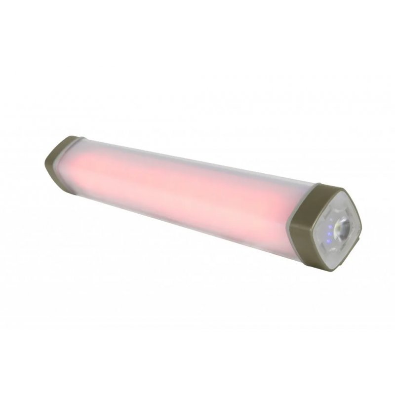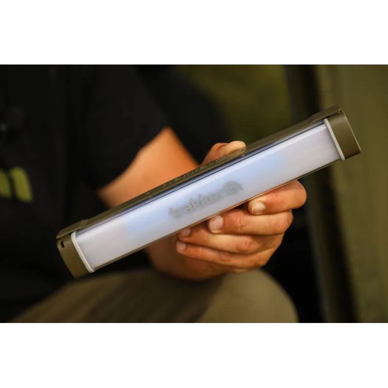 Trakker světlo Nitelife Bivvy Light 200 je multifunkční svítilna nabitá funkcemi! Může se pochlubit 6 světelnými režimy s až 80 hodinami svícení a jako bonus, může sloužit i jako „nouzová“ power banka. Jedno stisknutí tlačítka umožňuje procházet všemi 3 druhy bílého, červeného a jantarového světla s vlnovou délkou 610 nanometrů, která je méně přitažlivá pro komáry a můry. Jedním dlouhým stiskem tlačítka aktivujete svítidlo na boční straně svítilny (v tu chvíli máte v ruce klasickou „baterku“). Čtyři vestavěné LED diody neustále poskytují informace o stavu baterie a nabití. Speciální ocelová destička přesně koresponduje se dvěma silnými magnety v Bivvy Light a vy jej tak můžete připevnit k látce vašeho přístřešku. Vlastnosti produktu možnost vícebarevného osvětlení (bílá, červená, jantarová) jantarové, hmyz odpuzující zbarvení méně láká můry nebo komáry „nouzový“ napájecí zdroj s výstupem USB, pro napájení telefonů a dalších zařízení čtyři vestavěné LED diody poskytující informace o stavu baterie a nabití vodotěsné pouzdro zabraňující vnikání vlhkosti dobíjecí Li-Ion baterie se vstupním, nabíjecím portem Mikro USB vestavěné magnety a ocelová destička po práškovém lakování zajišťují připnutí k přístřešku Světelný režim Bílé, zářivkové světlo (3% jas) Bílé, zářivkové světlo (50% jas) Bílé, zářivkové světlo (100% jas) Červené světlo (100% jas) Jantarové světlo (100% jas) Boční svítilna (dlouhý stisk) Technické parametry Jas: 200 lm Barevná teplota: 6000 K Výkon: 2,0 W (max) Vstup: DC 5 V / 2,1 A Výstup: DC 5 V / 2,1 A Baterie: 3,7 V / 4000 mAh / 14,8 Wh Váha: 250 g Rozměry: 240 × 36 × 36 mm