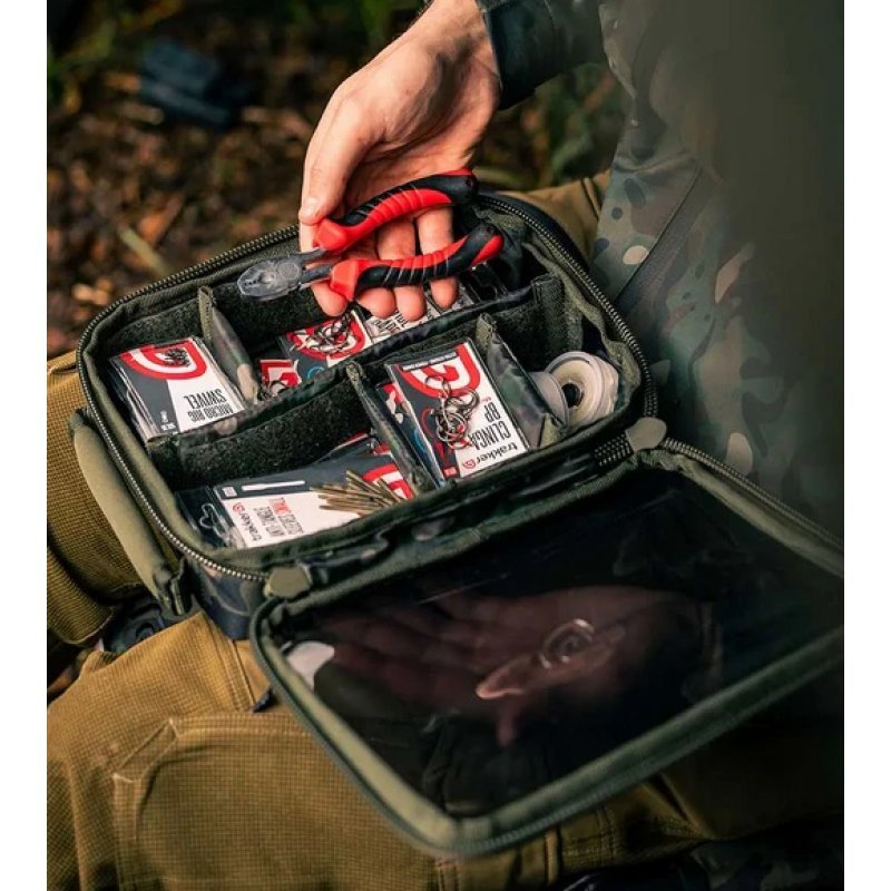 Uspořádejte si úhledně větší kaprařskou bižuterii a příslušenství v penálu NXC Bitz Pouch Large, který nabízí vnitřní přizpůsobitelný systém přepážek a dva odolné zipy pro snadný přístup. Ideální pro skladování dalších drobností, které se tak často nepoužívají, a také perfektně funguje jako velké pouzdro na olova nebo dokonce pro ukládání světel, powerbank atd. Víko a boky jsou z poloprůhledného kouřového PVC, které usnadňuje orientaci při zavřeném penálu. Penál je založený na odolné, vodotěsné základně a boky jsou polstrované, aby chránily obsah. Neoprenová rukojeť umístěná na horní straně pomáhá při vytahování z tašek nebo batohů. Vlastnosti produktu penál pro uložení větší kaprařeské bižuterie, nebo třeba olov přizpůsobitelný systém přepážek víko a boky z kouřového PVC usnadňují výhled při zavřeném penálu vysoce odolný dvojitý zip pevná, vodotěsná základna z PVC a polstrované boky neoprenová rukojeť v camo provedení z látky n-dura Performance Technické parametry Rozměry (D x Š x V): 25 x 21 x 7 cm Hmotnost: 0,25 kg Materiál: Polyester