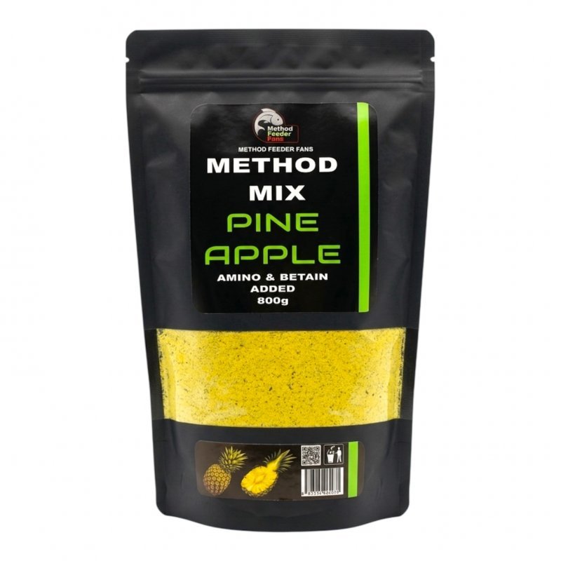 Příchuť ananas je složena z více druhů kukuřičných složek, mletých sladkých a čokoládových sušenek, nadrobno umleté anglické vločky. Je to přesně ten method mix, který máte po navlhčení chuť sníst. Jeho příjemná sladká vůně a výrazná žlutá barva láká ryby zejména během hlavní sezóny, tzn. od dubna do října. Mají ho v oblibě větší cejni, kapři a osvědčil se i při lovu amurů.