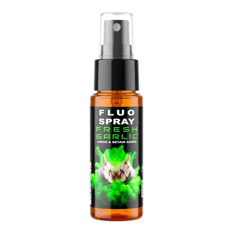 FLUO sprej přichází v sedmi příchutí: ananas, jahoda, česnek, krill, koření, vanilka a játra.