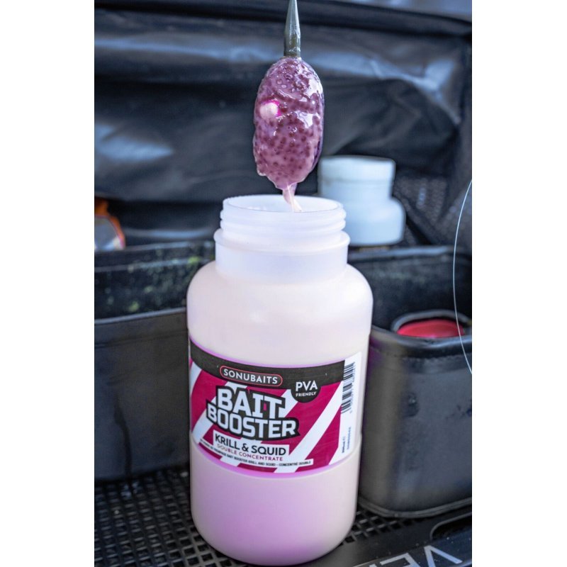 Firma Sonubaits přichází s novým boosteremm, který si zamiluje každý. Můžete v něm dipovat jakékoliv pva materiály, nástrahy, přidávat libovolně do krmení, peletek nebo klidně namáčet celá krmítka. Balení 800 ml je dostatečně velké, láhev má široké hrdlo. Výrazně voní, barví, má skvělou a jedinečnou chuť.
