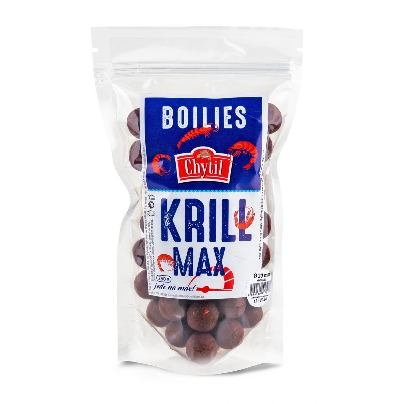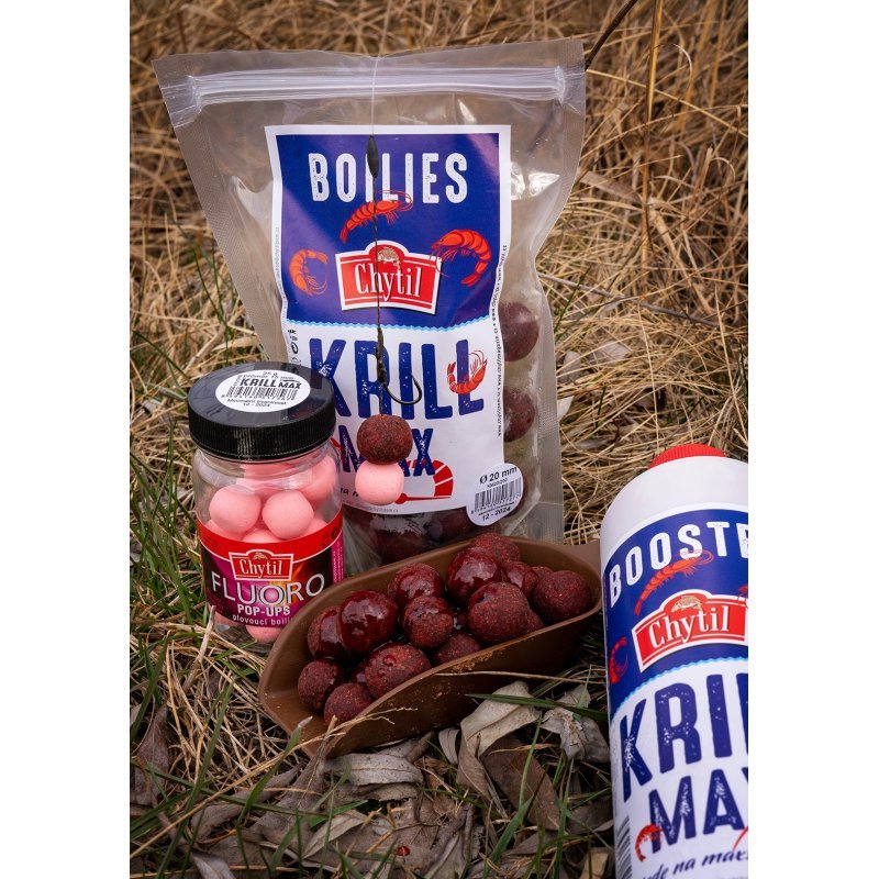 Kvalitní moučka z arktického krillu, pořádná nálož originálního robin redu + španělského pepře Haith“ s original, esenciální olej černý pepř, exkluzivní krillová esence a několik dalších surovin, důležitých pro výživu kaprů. To všechno obsahuje pro nás již léty ověřená kulička Krill Max. Tato kombinace nevznikla za půl hodiny někde u stolu, ale stojí za ní poctivá práce našeho celého rybářského a výrobního týmu. A co je hlavní, řekli si o ni přímo kapři i v těžkých situacích na závodech, kdy ostatní nástrahy ignorovali. Přelstila kapry na Tovačově, Mušově, Štítu, Balatonu, Šíravě nebo řekách Labi a Moravě.