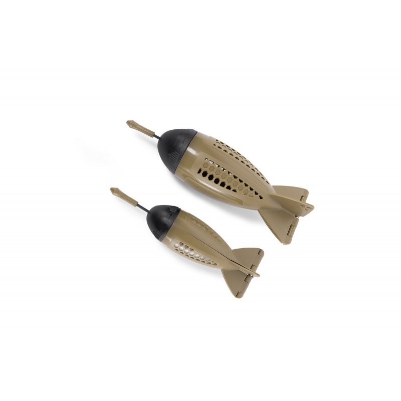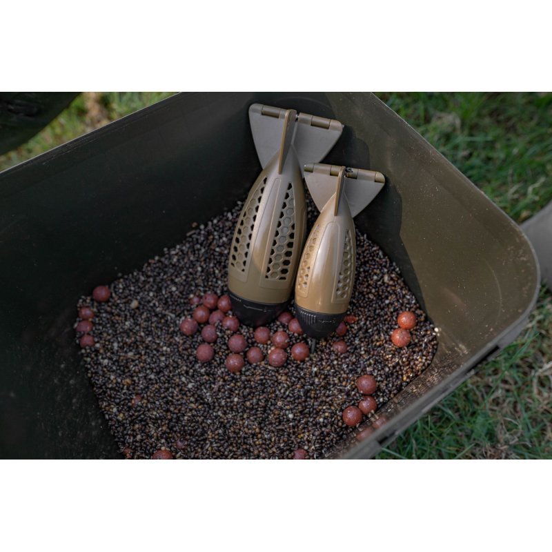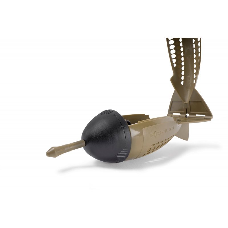 Nejlepší Bait Bopper na návnady. Korum Bopper je vybaven unikátním dovažovacím systémem, kde lze pomocí vyměnitelných závaží nastavit nejen rychlost potápění ale i hmotnost Bopperu. Závaží má tvar koblihy a dává se do na vnitřní části tělícka. Závaží mohu být zajištěné na místě malým ručním kolečkem uvnitř tělíčka. To dává rybářum poprvé možnost jemně upravit hmotnost svého Bait Bopperu. A co víc, samotný Bopper byl navržen tak, aby byl velmi aerodynamický díky tvaru rakety, který volně létá vzduchem a propadá vodou. Krřdélka vzadu stabilizují Bopper, což zajištuje, že ho mužete velmi přesne nahazovat. Hlavní část s dutinou je vyrobena ze dvou částí, které jsou pružinové, aby se otevřely, když Bopper narazí na dno reky nebo jezera. Samotné tělo má otvory, aby bylo mnohem snazší ho stáhnout zpět v rychle tekoucí vodě. Plnění návnady dovnitř Bopperu je snadné a díky tvaru hlavní dutiny se dovnitř vejde mnohem více návnad, než do podobných produktu. Dostupné jsou dvě velikosti Bopperu, které vyhovují různým požadavkům a každou verzi lze použít s vnitřním závažím nebo bez něj dle potreby. Možnost učinit jej těžším, pokud je průtok mnohem vyšší, určite bude vyhovovat spoustě rybárů, lovících na řekách a s feederem.
