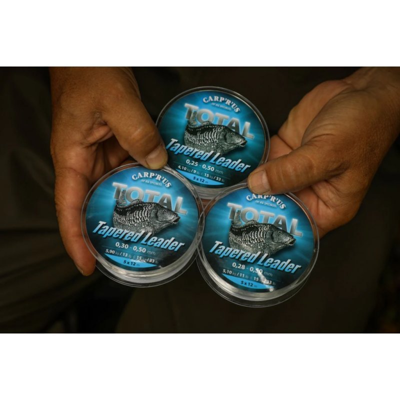 Ujímané vlasce se stali jedním z nejpopulárnějších řešení při nahazování na velké vzdálenosti. Jsme hrdí na to, že vám můžeme představit Carp´R´Us Total Tapered Leaders. Jemný, pevný, zužující se leader v křišťálově čisté barvě. Každá cívka pojme 5 samostatných návazců o délce 12 m, které lze stříhat podle individuálních potřeb každého kapraře. Technické parametry Barva: čirá Balení: 5 × 12 m