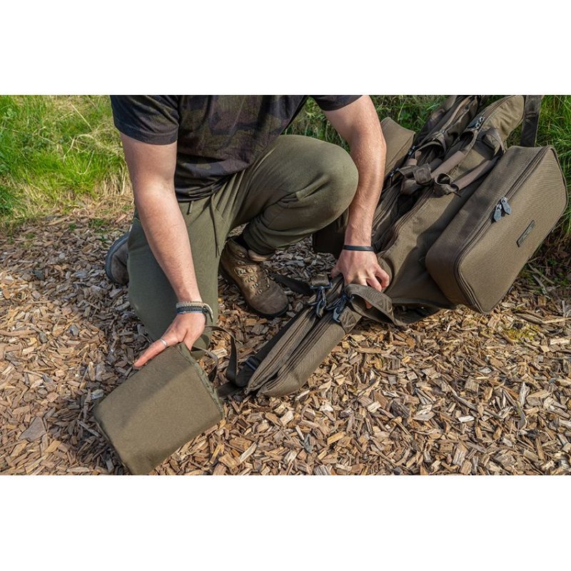 Dny, kdy vám padaly jednotlivé obaly na pruty z vozíku, nebo byl komplikovaný transport více kusů jednodílných obalů, jsou pryč. Compound Rod Sleeve Transporter umožňuje snadno spojovat několik single, nebo double pouzder na pruty, a to rychle a jednoduše dle potřebné situace. Koncové toulce a spojovací pás na zafixování pouzder k sobě jsou velmi robustní, ale přitom plně nastavitelné a lehké. Transporter jednoduše pojme 10 i 12ft pouzdra. Jednoduše se do Transporteru zasunou až 4 pouzdra a utáhnou stahovací šňůrkou, tím jsou pruty připraveny k přepravě.