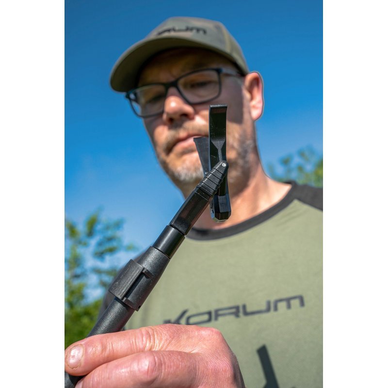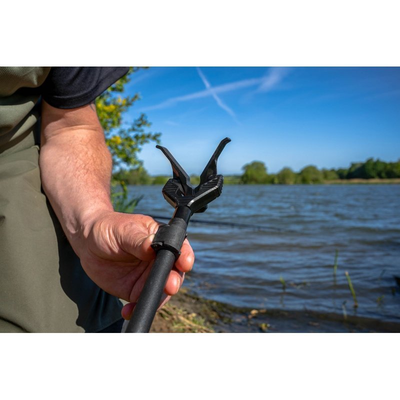Tato speciální podpěra prutu je vyvážená, takže hlava podpěry prutu je vždy ve správném úhlu i na strmém svahu. Podpěra se může volně otáčet do svislé polohy, ale po zasunutí prutu se přizpůsobí. Pro dosažení nejlepších výsledků používejte s vidličkami