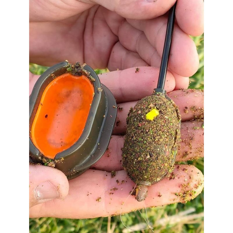 Formička vhodná na krmítka firmy Feederbait. Použití je snadné. Stačí po okraj naplnit krmením, přiložit krmítko, stlačit a zmačknout tlačítko umístěné po celé spodní straně formičky. Z formičky Vám vypadne úhledná „bábovička“ a vy můžete nahazovat.