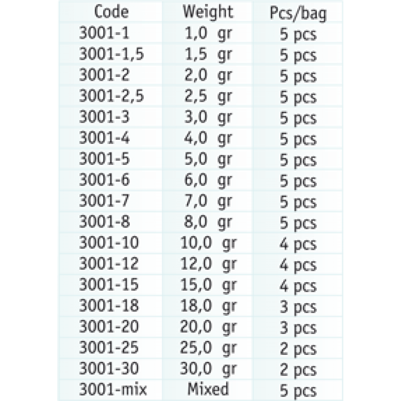 Kulové zátěže se středovou dutinkou. Lze je nechat jako průběžné, ale i zamáčknout a zabránit tak pohybu na vlasci.
