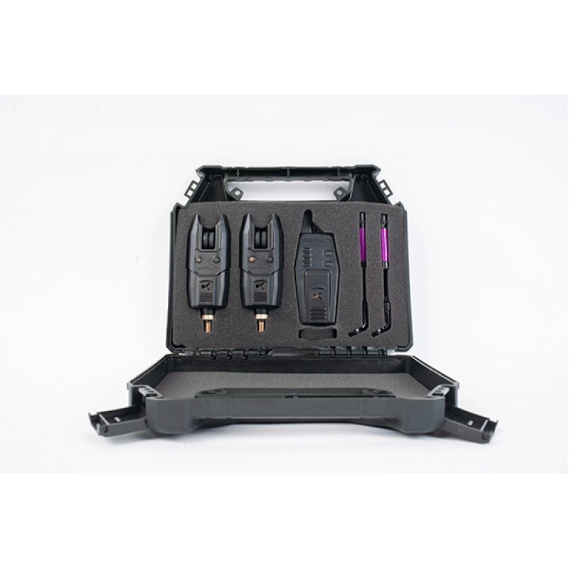 Tato sada obsahuje dva signalizátory záběru a bezdrátový příposlech. Tyto KBI signalizátory záběru jsou kompaktní, robustní a spolehlivé. Díky citlivosti kolečka, přes které vede vlasec a světelnou LED diodou, je fantastickou volbou pro všechny druhy rybaření. Reproduktor je vybaven nastavitelnou hlasitostí, zatímco LED dioda se může pochlubit funkcí, že svítí ještě 10 sekund po záběru. Přijímač má dalekosáhlý bezdrátový dosah, tlačítko na zapnutí / vypnutí a ovládání hlasitosti. Součástí balení jsou také dva řetízkové swingery, vše hezky v jednom kompaktním balení.