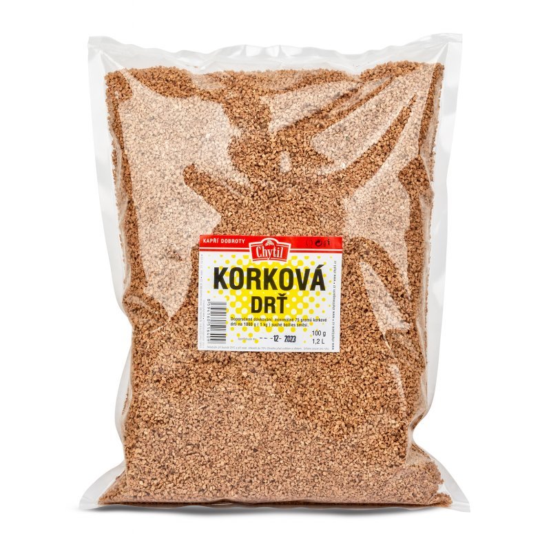 Korková drť je skvělou pomůcko při výrobce ploucího nebo neutrálně vyváženého boilies. Přidáním  správného poměru do boilies mixu tím docílíte plovoucího boilies idetnické příchutě a složení napři. jako toho, kterým krmíte.
