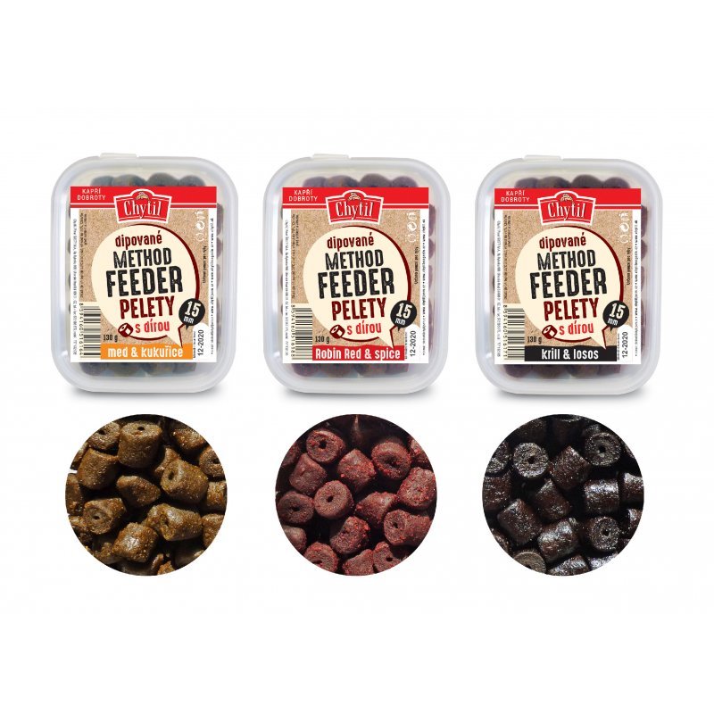 Průměr 15 mm je výbornou volbou v teplejších měsících, lze je pochopitelně použít nejen při lovu na feeder, ale také při běžném lovu na položenou. Doba rozpadu pelety se pohybuje od 1h do 2 h v závislosti na podmínkách ve vodě (teplota vody, aktivita ryb…). Každá příchuť má svoji originální a nezaměnitelnou vůni a budou Vám vyhovovat po celý rok.