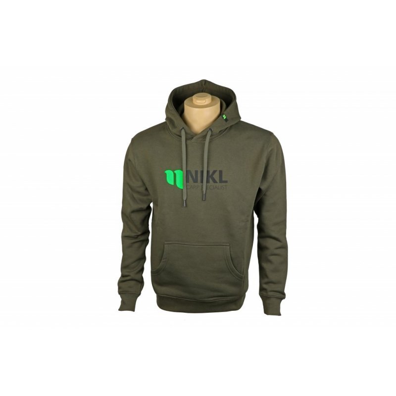 Kvalitní, příjemná mikina v zelené barvě s logem Nikl na prsou a malou textilní etiketou na kapuci.