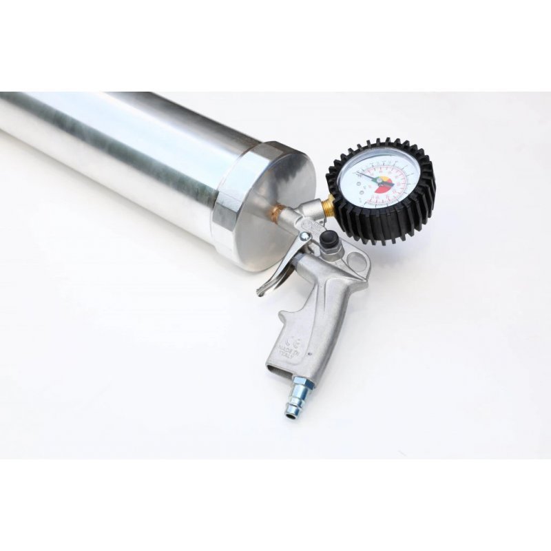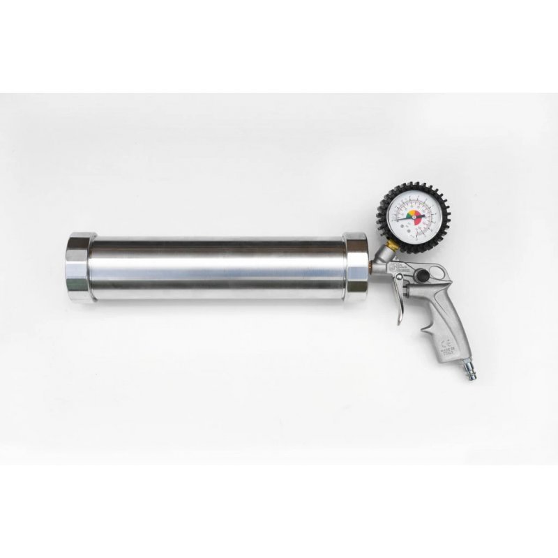 Profesionální výtlačná pistole na těsto, kterou ocení všichni kapraři, kteří si sami vaří své boilies ve větším množství. Místo vysilujícího ručního vytlačování těsta jednoduše napojíte naši pneumatickou pistoli na vhodný kompresor a těsto bude vytlačováno pod tlakem vzduchu. Doporučujeme kompresor nastavit na tlak 8 baru. Špičkový pomocník, který značně ulehčí výrobu vašich návnad. Nabízíme ve 2 velikostech: 1,1 kg těsta / 2,3 kg těsta Materiál: nerez