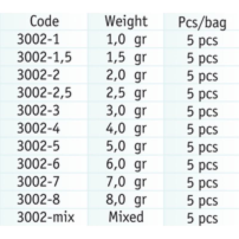 Balení olivek Cralusso v gramážích 1-1,5-2-2,5-3-4-5-6-7-8 g. Balení obsahuje 5 ks olivek.
