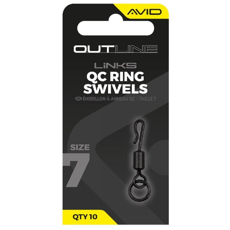 Outline QC Ring Swivels jsou matné obratlíky s kroužkem, dostupné ve velikostech 7 a 11.