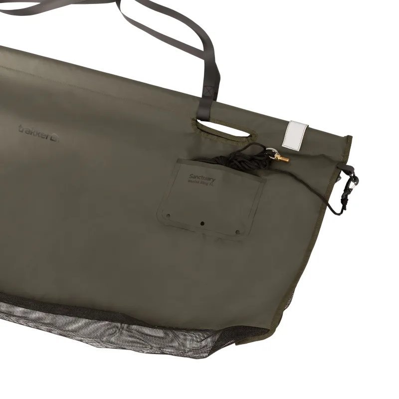 Trakker Sak Sanctuary Welded Sling XL Přechovávací sak pro ty, kteří vyžadují nekompromisní péči o ryby a maximální výkon. Trakker Sanctuary Welded Sling kombinuje mimořádnou odolnost s pokročilým designem špičkových materiálů. Sak je vyroben z extrémně odolného, rychleschnoucího PVC, které poskytuje vysokou spolehlivost pro dlouhodobé používání. Jemná pogumovaná síťovina na dně a bocích umožňuje rychlý odtok vody a skvělou cirkulaci vody, což zajišťuje, že kapr zůstane klidný a bude neustále v dostatečně okysličené vodě. Hladký povrch navíc chrání citlivou vrstvu hlenu a pomáhá udržovat rybu v bezpečí během vážení a uchování. Silné TPU popruhy odolné vůči nasáknutí vody zajišťují minimální hmotnost i po namočení – ideální pro přesné vážení. Úzké plováky z vysokohustotní pěny a pevná, ale ohebná ramena ze sklolaminátu poskytují vynikající vztlak a stabilitu bez jakékoliv deformace, i po dlouhodobém používání. Pro větší praktičnost a bezpečnost za všech podmínek naleznete na saku odnímatelné reflexní pásky. Sak je dodáván včetně šňůry s rychloupínacím klipem, který umožňuje bezpečné upevnění na břehu. Šnůru snadno uschováte do malé kapsy. Každý Sanctuary Welded Sling je dodáván s plně svařeným PVC vakem s rolovacím uzávěrem, který je vodotěsný a nepustí ven žádný zápach, což udržuje vaše vybavení i vozidlo čisté. Vlastnosti produktu extrémně odolná, rychleschnoucí konstrukce z PVC jemné, pogumované síťované dno a boční panely pro rychlý odtok vody, zajištuje cirkulaci vody a chrání vrstvu rybího slizu pevné popruhy z TPU, které nenasákají vodu úzké plováky z vysokohustotní pěny po celé délce a silná, pružná sklolaminátová ramena, která se nedeformují odnímatelné reflexní pásky pro viditelnost v noci upevňovací šňůra s rychloupínací sponou a kapsa na její uložení dodává se s plně svařeným PVC vakem s rolovacím uzávěrem Technické parametry Rozměry: 130 (D) x 70 (H) x 38 cm (Š) Hmotnost: 2,4 kg Barva: Zelená Složení: 97% PVC, 2% TPU, 1% Polyester